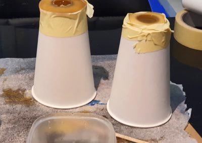 Prozess – Schritt 3: Rindenoberfläche vollständig mit Epoxidharz beschichtet. LEDs befestigt